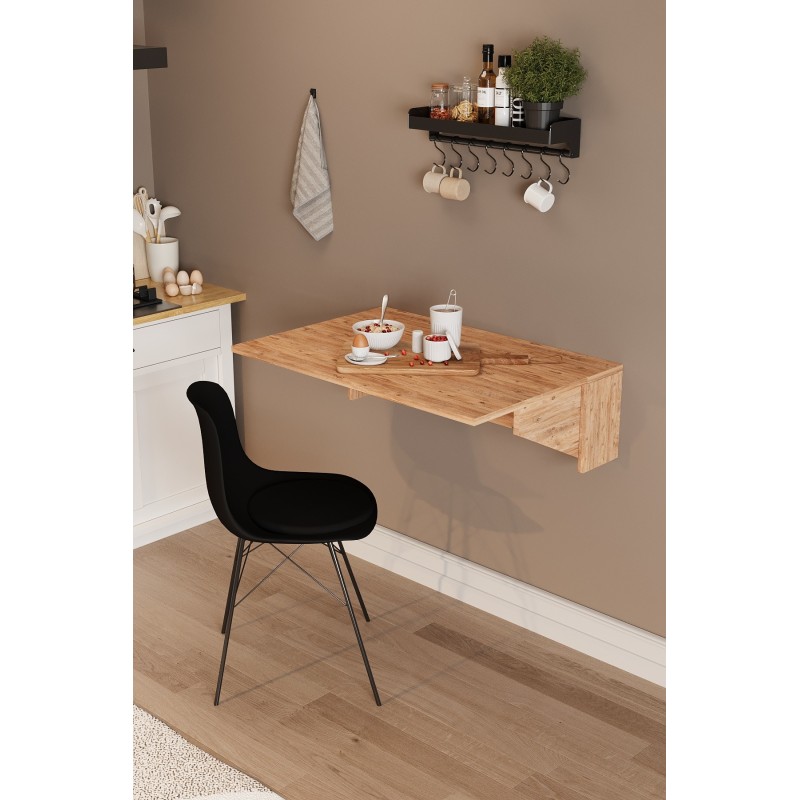 Masanın tablasını destekleyen 2 adet kol bulunmaktadır. Bu sayede daha güvenli ve sağlam bir biçimde kullanım mümkündür. Balkonunuzda ve mutfağınızda kullanım imkanı sağlar, az yer kaplar. ; Melamin kaplama yonga levhadan üretilmiştir. Dar alanlar için ergonomik bir üründür. Kolay, hızlı hatasız kurulum yapılabilir. ; Kurulumu gayet kolaydır ve kurulum aşamasında hiç bir zorluk yaşanmaz. Kurulum için gerekli malzemeler kargo ile beraber gönderilir. Yonga levha kalınlığı 18 mm'dir. ; Açılır kapanır olmasından dolayı fazla alan kaplamaz ve kullanılmadığı zamanlarda kapatılarak alan tasarrufu sağlanabilir. ; Açılması ve kapatılması oldukça kolay olmakla beraber kullanırken de zorluk yaşanmaz. ; Ürün görsellerinde bulunan çeşitli dekorlar satışa dahil değildir ve sadece dekor amaçlı eklenmiştir. ; Sandalyeler satışa dahil değildir ve sadece dekor amacıyla görsele eklenmiştir. ; Yaşam alanını güzelleştirmek ve alan kaplamadan masa sahibi olmak isteyenler için en iyi tercih olacaktır. ;