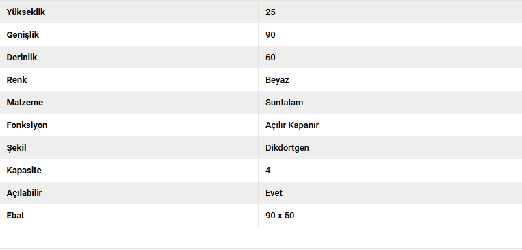 Ürün ölçüleri: Raf kısmı boy: 90 cm derinlik: 15 cm Masa boy: 90 cm en: 60 cm
