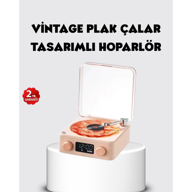 Vintage plak çalar esintileri taşıyan estetik tasarımı, ürünü bir dekorasyon objesine dönüştürür. Zarif hatlara sahip şeffaf gövde, bulunduğu ortama modern bir hava katar. Bu tasarım, ürünü hem yetişkin odalarında hem genç odalarında hem de hediye olarak tercih edilebilir bir seçenek haline getirir. Hafif yapısı sayesinde taşınabilir ve ev içinde farklı alanlarda kolayca kullanılabilir.