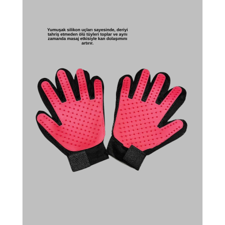 Bu tüy toplama ve masaj eldiveni, köpek, kedi, at ve diğer tüylü hayvanlar için uygundur.