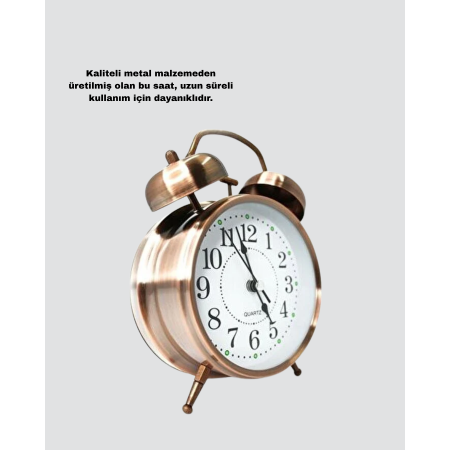 Klasik bronz rengiyle retro dekor sevenlerin favorisi olacak bu masa saati, hem ev hem ofis dekorasyonunda kusursuz bir tamamlayıcıdır. Ayrıca yeni ev hediyesi, doğum günü ya da ofis açılışı hediyesi olarak da son derece zarif bir tercihtir.