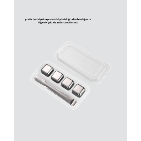 Paslanmaz Metal Buz Küpleri Seti, içeceklerinizi sulandırmadan soğutmak için yenilikçi bir çözüm sunar.