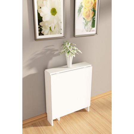 Ahşap tonlarının zarif görünümü, bulunduğu alana sofistike bir hava katarken, katlanabilir yapısıyla küçük alanlarda pratik kullanım imkânı sunar. Yemek masası, çalışma yüzeyi veya servis alanı olarak çok yönlü kullanımıyla hem estetik hem de fonksiyonel bir çözüm arayanlar için idealdir.