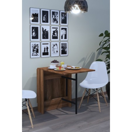 Ahşap tonlarının zarif görünümü, bulunduğu alana sofistike bir hava katarken, katlanabilir yapısıyla küçük alanlarda pratik kullanım imkânı sunar. Yemek masası, çalışma yüzeyi veya servis alanı olarak çok yönlü kullanımıyla hem estetik hem de fonksiyonel bir çözüm arayanlar için idealdir.